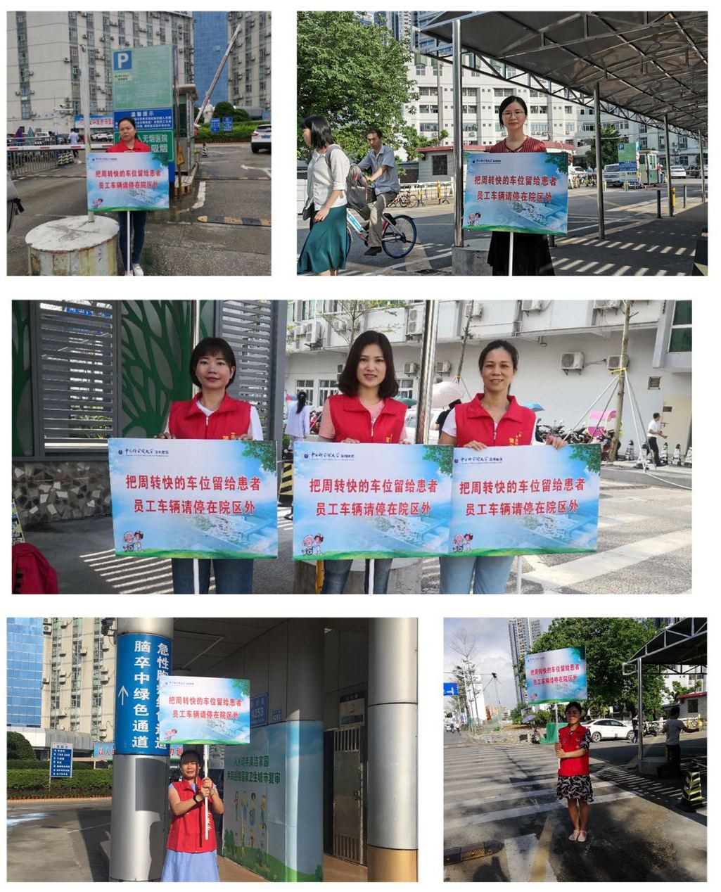 6月13日-6月19日早上,第一、第二、第三党支部组织党员志愿者在西院区各个车辆出入口开展员工停车指引志愿服务活动,倡导医护人员将车辆停放在院外停车场,将院内停车位留给患者。(通讯员 许艳贞、赵伟红、张晓丽)