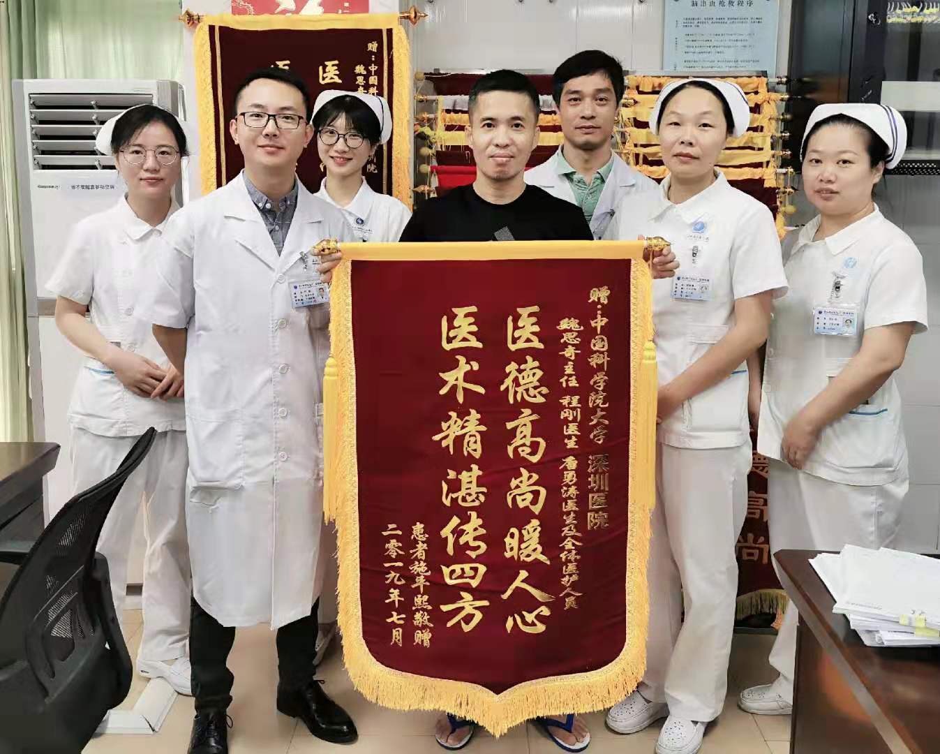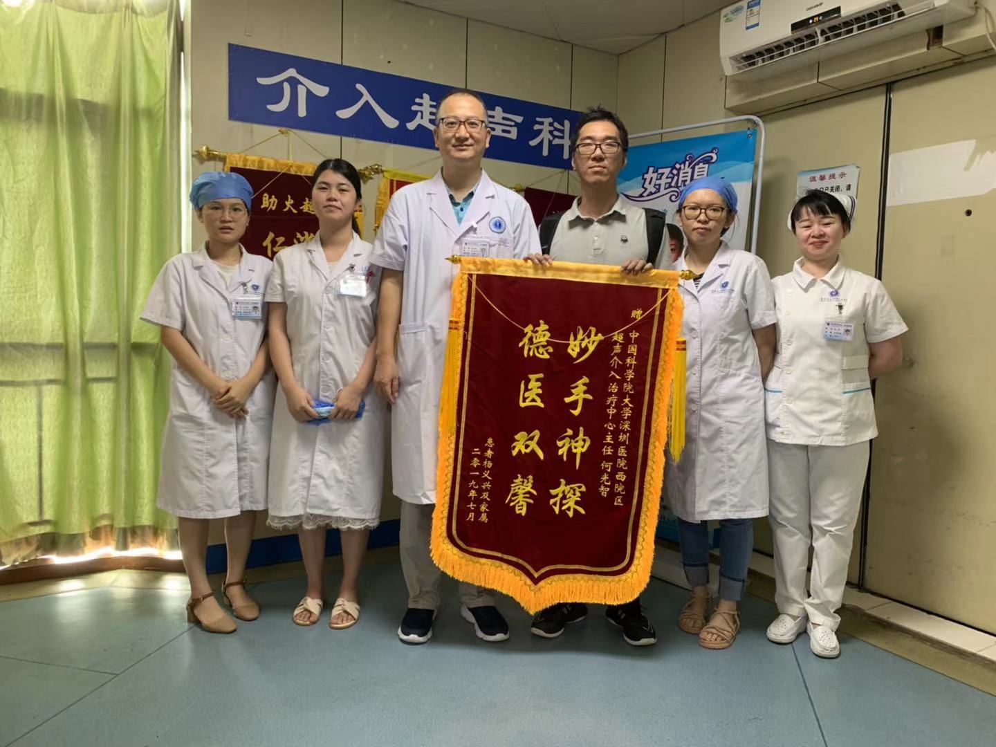 7月23日,超声医学科收到来自患者杨先生的一面锦旗。35岁的杨先生,10年前就被多家医院诊断为“肝硬化、肝衰竭”,得知自己患上晚期难治性疾病,一下子失去了生活的信心。后辗转来到H视频 超声科,经第十三党支部党员、超声科主任何光智诊断,杨先生并非患上了晚期肝病,而是由于先天性大血管畸形引起的巴德-基亚里综合征(布加综合征),只要做介入治疗,肝功能完全可以恢复正常!得到正确诊断及正规治疗的杨先生肝功能大大改善了,一直随诊复查,感激之情难以言表,特制锦旗表达谢意。(通讯员 张家玲)