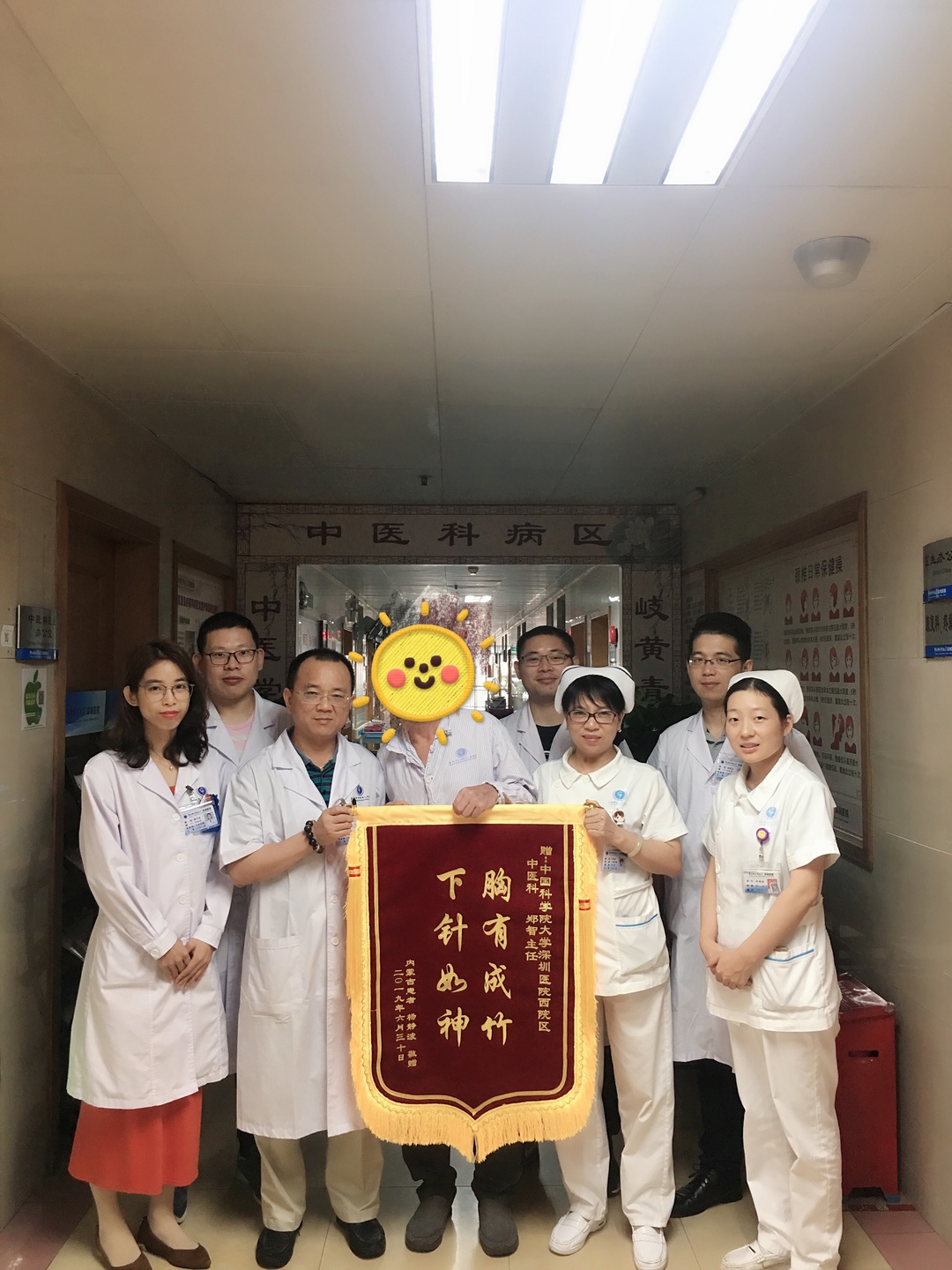 7月9日,患者杨先生为中医科郑智主任送来锦旗。今年6月份杨先生因病毒性感冒入住中医科,入院前自觉全身体凉,早晚乏力大汗淋漓,胃口状态不佳。住院后郑智主任给予中医科特色脐针疗法对症治疗,五天后体凉症状很快恢复了正常,体能胃口状态明显改变,后在中医科调理后所有症状消失出院,今日特送来锦旗表示诚挚感谢。(通讯员 刘立邦)