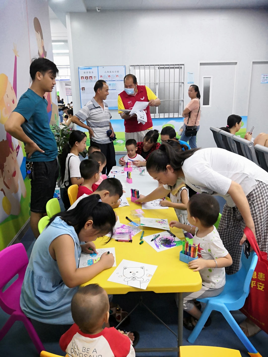 7月19日上午,西院区社工和健康U站的义工们在儿科门诊开展了一次别开生面的涂鸦活动。通过各种生动有趣的动物简画、动漫人物以及儿童绘本,让患儿在就诊等待过程中也能够充满笑容、欢乐开怀,同时也减轻了家长们的精神压力,得到了大家的好评。(通讯员 罗丹丽)