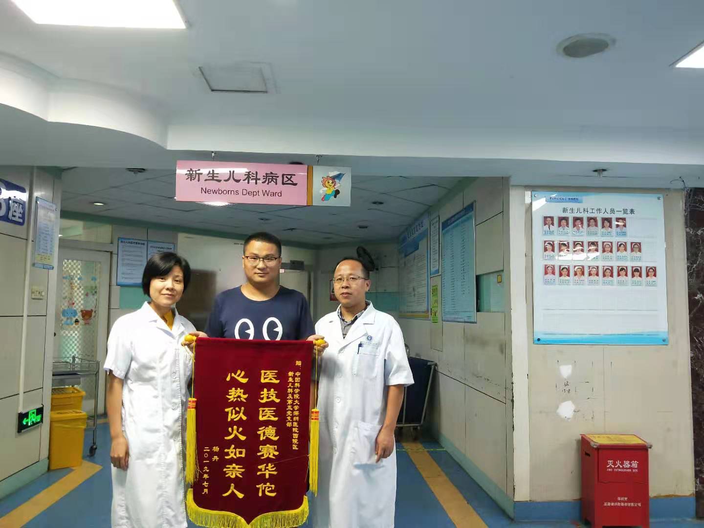 7月21日,新生儿科和第五党支部收到患儿家属杨先生送来的锦旗,感谢医务人员的精心治疗和第五支部全体党员的爱心帮扶。杨先生的妻子在H视频 生了一对双胞胎,因早产入住新生儿一科,住院期间因病情重需要呼吸机治疗,住院时间长约一月余,住院费用比较高,家庭经济困难,第五支部了解情况后,倡导支部党员为其募捐善款3820元,送上一份关爱和帮助。(通讯员 李少棉)