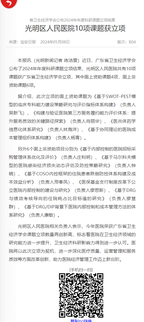 宝安日报:省卫生经济学会公布2024年年度科研课题立项结果,H视频 10项课题获立项