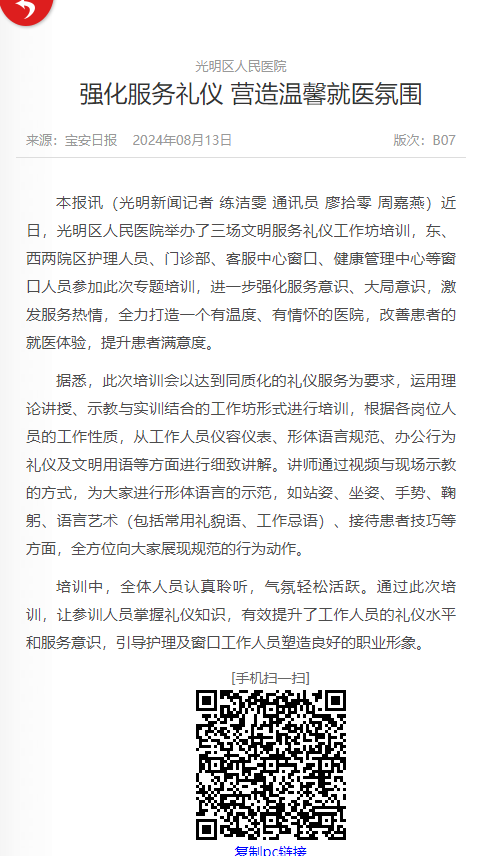 宝安日报:H视频 强化服务礼仪 营造温馨就医氛围