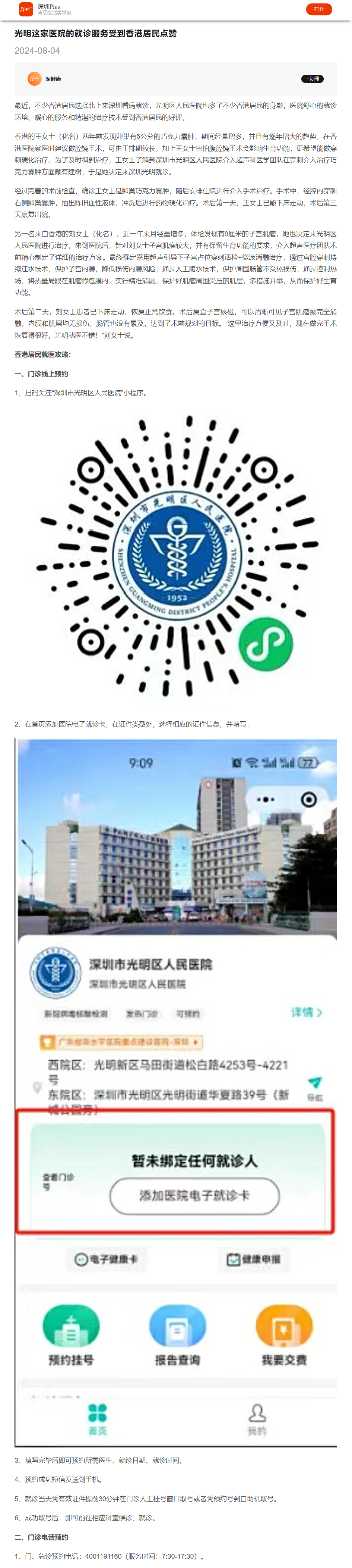 深圳plus:光明这家医院的就诊服务受到香港居民点赞