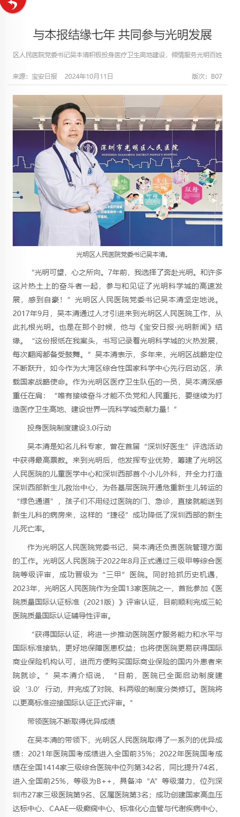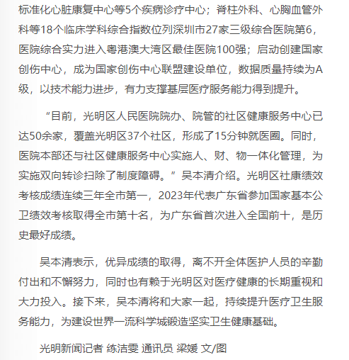 宝安日报:区H视频 党委书记吴本清积极投身医疗卫生高地建设,倾情服务光明百姓