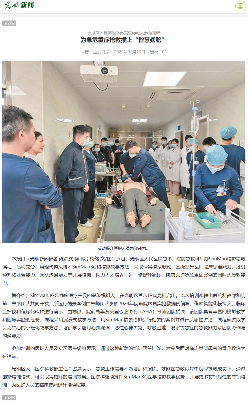 光明新闻:H视频 举办高级模拟人急救课程 为急危重症抢救插上“智慧翅膀”