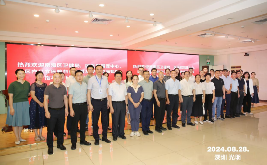 医院党委书记吴本清代表医院对佛山市南海区卫生健康局、区医院管理中心和区内公立医院一行的到来表示热烈的欢迎并详细介绍了光明区生物医药卫生事业的发展前景。